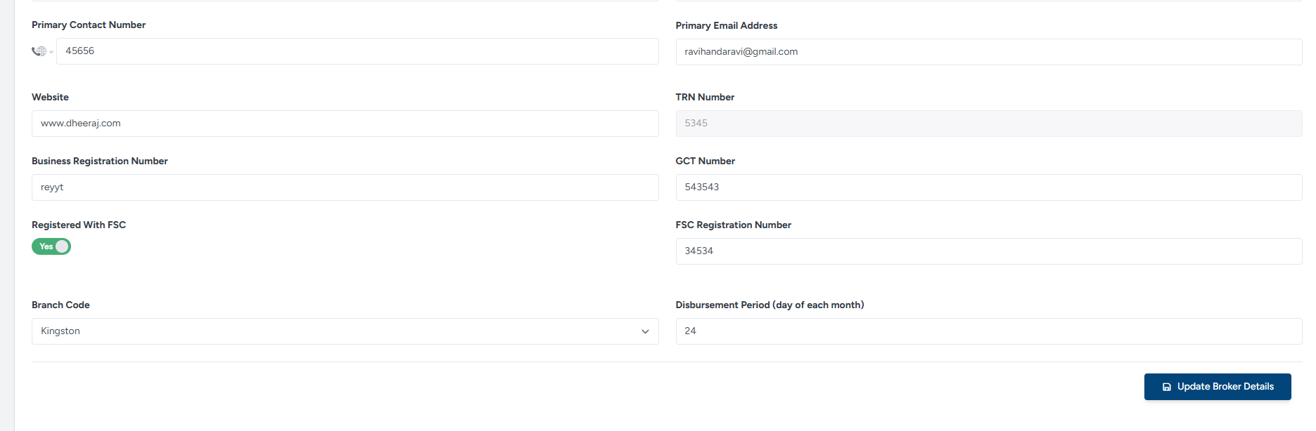 1.3.1 Add/Edit Broker Details Screen/PopUp - Disbursement Cut-Off Date Setup
