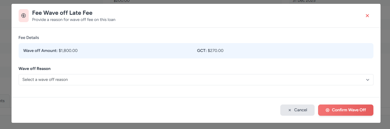 Waive Off PopUp