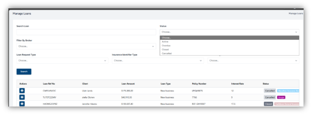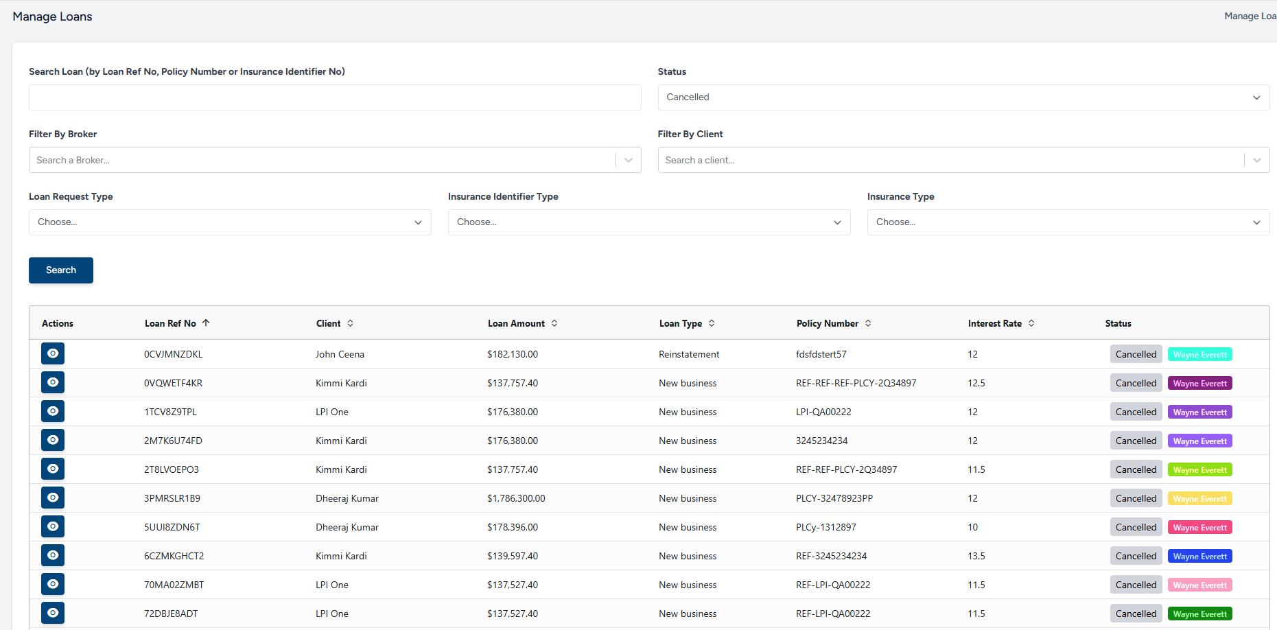 This screen is done under Manage Loans screen with "Cancelled" under "Status" fitler.