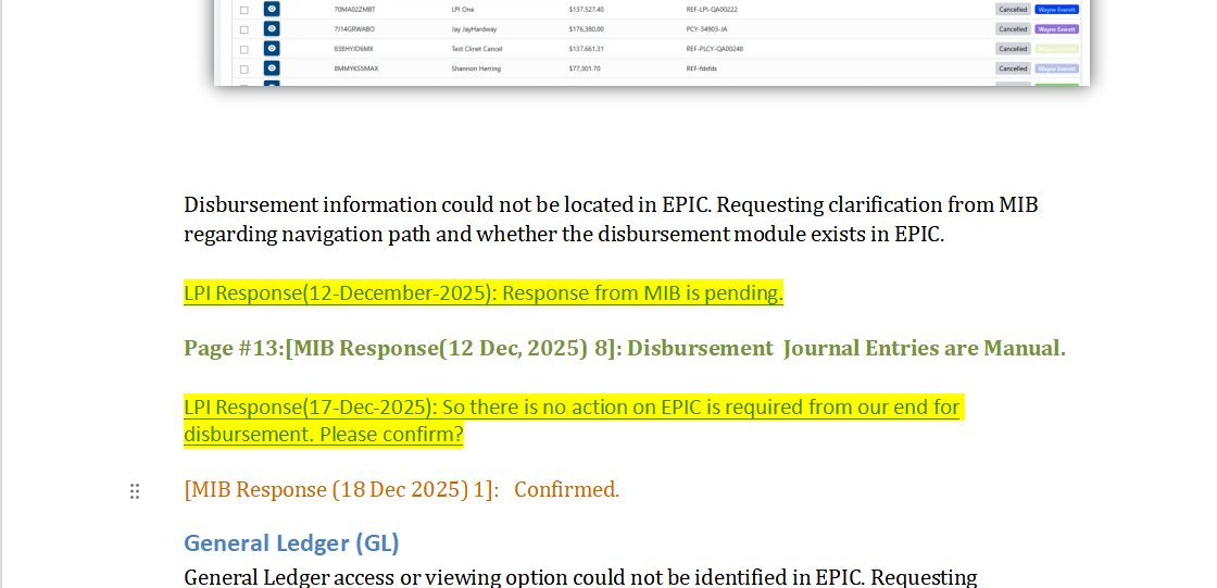 No action is required for disbursement in EPIC as it will be handled manually by MIB.