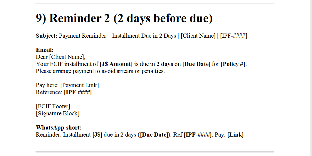 1.16.9 Payment Reminder 2 - (2 days before due)