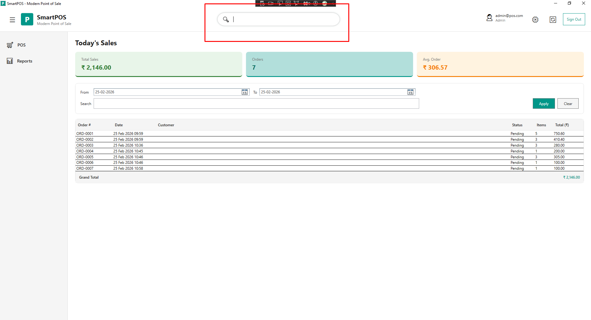 Search bar is removed from reports section.