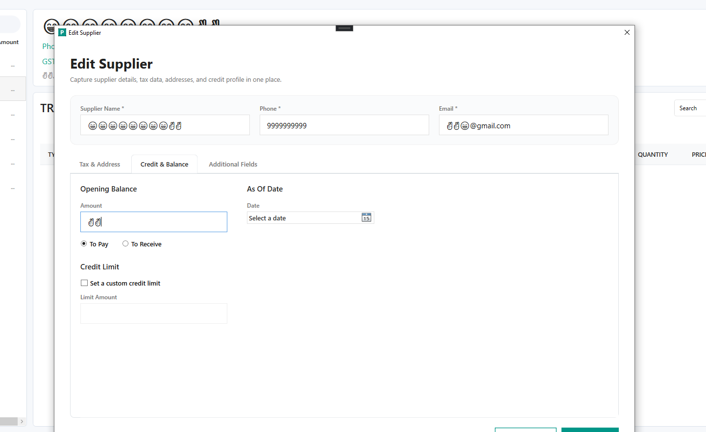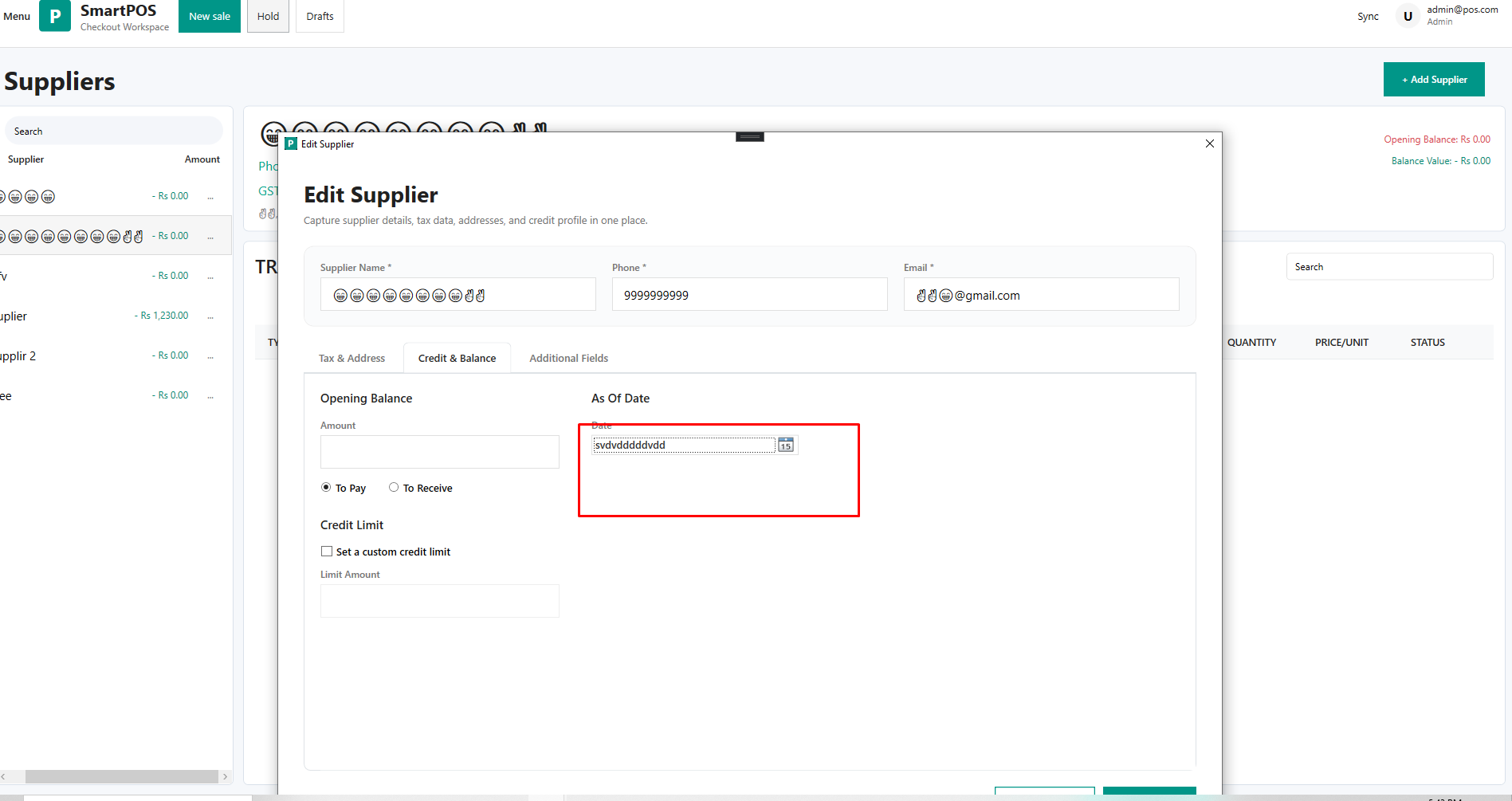 While adding text in date field shows success message when adding supplier.